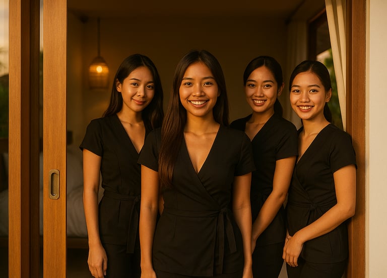 Bali Girls VIP sends trained, English-speaking therapists straight to your door. We set up fast, listen to how you like it, and melt the flight out of your body. We reply in under 5 minutes on WhatsApp and arrive when we say we will—so you never leave the pool.